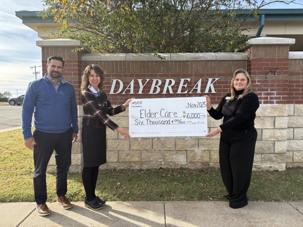 “It is our pleasure to present this donation on behalf of the Arvest Foundation,” said Tesavis. “Elder Care leads the way in senior care in our community, helping individuals remain independent and supporting families caring for loved ones.”